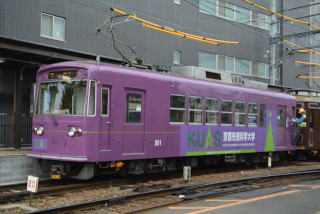 | モボ501形は、1984年に501・502、1985年に503・504の計4両が 武庫川車両(現・阪神車両メンテナンス)で製造されました。 1971年製のモボ301形(新造)、 1975年製のモボ101形(更新車)に次ぐものです。 これらは当初、集電装置をトロリーポールとしておりましたが、 モボ501形では、新製時からZ型パンタグラフを装備しました。 思えばトロリーポールを最後まで使い続けたことといい、 詰め襟の制服を着続けてきたこといい、 京福という鉄道会社は、 頑固なまでにスタイルを変えない社風があったようです。 運転台からトロリーポールの操作をすることがなくなったので、 前面窓が大型ガラスの1枚固定式となったモボ501形は、 まさに「新時代のニューフェース」と言うにふさわしい車両です。 嵐電初の冷房車であるのみならず、 車体自体も大きく変更、扉の位置を変更しました。 じり貧状態の京福を再生するのだ。という意気込みを私は感じました。 さて今回のお話のカギともなる扉の位置なんですが、 車体の両端に配置されていた扉の後扉を車体中央に移動し、 前・中扉配置としました。 降車口となる前扉については車体の最前部に移動したため、 こちらにあった乗務員扉はなくしています。 なお降車口となる前扉は、幅を狭くしました。 これは、1列での降車を促すもので 運転手さんが乗車券の確認を容易にするための工夫です。 運賃箱も路線バスのように運転席左側、 進行方向に対し斜めに設置されました。 そう これは、ワンマン運転実施に備えたものです。 当時の一般的な路面電車のスタイルと申せましょう。 さて、おもしろいのはこのように ワンマン化対応がなされているのにもかかわらず、 乗車口となる中扉のところに車掌台が設置されたことです。 画像をご覧下さい。この部分の窓が引き違い式となっていますね。 これは、車掌さんが車外の様子を確認するためのものです。 なぜこんなことになったのでしょう。 京福のワンマン化が、 段階を追ってなされていることに原因がありそうです。 1982年12月 - 早朝・深夜時間帯でワンマン運転開始。 1985年3月 - 朝ラッシュ時除きワンマン運転化。 1987年8月 - 終日ワンマン運転化。 モボ501形のデビューが1984年ですから、 当時はまだツーマンが主であったのがその理由といえそうです。 でも、全面ワンマン化を目前に控えていたわけです。 車掌台まで用意せずとも とりあえず、 車掌は後部の乗務員扉から戸閉操作するとか…できなかったのかな。 と思ってしまいました。 しかしそうならなかったのは、 当時、会社が車掌さんの仕事に 一目置いていたからではなかったかと思うのです。 ターミナルと乗換駅である帷子ノ辻は有人駅ですが、 阪急との連絡駅である西院や、 観光の拠点となる太秦なんかは無人駅であるのにもかかわらず 結構、乗降客が多いのです。 ラッシュ時もさることながら、 観光シーズンは、時間により、場所により 乗客数に変動があるものです。 2002年7月に 均一運賃化するまでは、 区間毎に運賃が違っていましたから ワケのわからない観光客を相手にするのは、 本当に大変なことだったと思われます。 人件費を抑えるためにワンマン化を決めたとはいっても、 現場では列車の遅れが出ないように 懸命に乗客をさばいている車掌さんがいるのです。 彼らの気持ちをないがしろにはできない。 一方、ワンマン化するにあたっては、 他社局で実績のある路面電車型の扉配置を導入して、 効率的に乗客をさばきたい。 そんな思いからモボ501形は生まれたのではないでしょうか。 さて、ワンマンカーとしてもツーマンカーとしても使えるモボ501形は、 冷房車でもあり、さぞかし重宝され大活躍をしたに違いない。 と思っていたのですが、そうでもないようです。 4両とその数が少なかったということもあるでしょうが、 モボ501形の写真が、圧倒的に少ないのです。 来たら何でも片っ端から一両一両撮影するのが私の流儀ですが、 モボ501形の写真が少ないのは、かなり昔から意識していました。 なぜでしょう。 やはりドアの位置が原因ではないか。と思われます。 30両ほどある車両のうち4両について、乗車位置が違うのです。 せっかく整列乗車しようと並んでも、 モボ501形が来れば列は乱れます。 一気に中扉車両を取りそろえることができれば、 混乱も収まるでしょうが、 人件費削減のためにワンマン化を推し進めざるを得ない京福に そんな財力はありませんでした。 モボ501形の後継車両は、モボ611形、621形、631形です。 5年の空白の後、 1990〜96年にかけ7年にわたり14両製造されました。 種車によって形式を分けてはいますが、 モボ501形と同様、台車や主要機器を旧型車から流用しており、 基本的にいずれも同一性能です。 しかしながら、いずれも、在来型の扉配置に戻ってしまいました。 それどころか4両いたモボ501形のうち503、504が、 モボ2001形新造時に代替廃車となってしまったのです。 なんと15年の命でした。 71年製のモボ301形が、20
